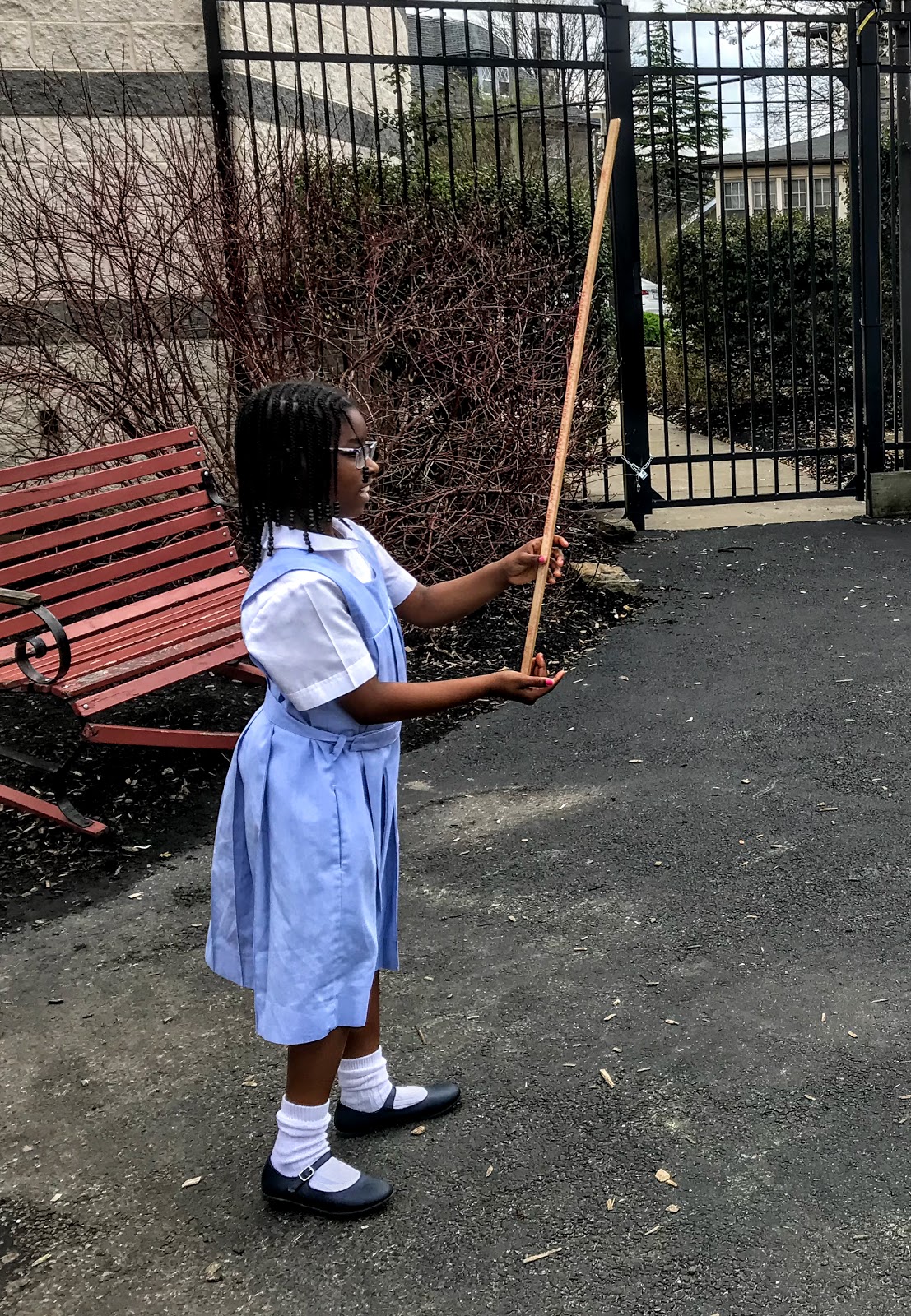 The students also practiced keeping yardsticks balanced on their hands which was quite a bit harder than it looked.